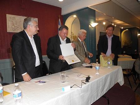 Τον Περιφερειάρχη παρουσίασε και καλωσόρισε ο γραμματέας της Παγκόσμιας Ομοσπονδίας Κεφαλλήνων και Ιθακησίων «Οδυσσεύς» Κώστας Βαγγελάτος και στη συνέχεια το λόγο πήρε ο Πρόεδρος της Ιονίου Πολιτιστικής Ομοσπονδίας Αμερικής Νίκος Μπάρδης τονίζοντας ότι: «πλέον αποτελεί ένα καλό φίλο, που αξίζει τη στήριξη όλων μας γιατί αγωνίζεται σε δύσκολες στιγμές. Ήδη εδώ στη Νέα Υόρκη δεν σταμάτησε λεπτό να κάνει επαφές για τα νησιά μας και θα βρισκόμαστε σε στενή συνεργασία για να βοηθήσουμε όπου μπορούμε από την πλευρά μας».