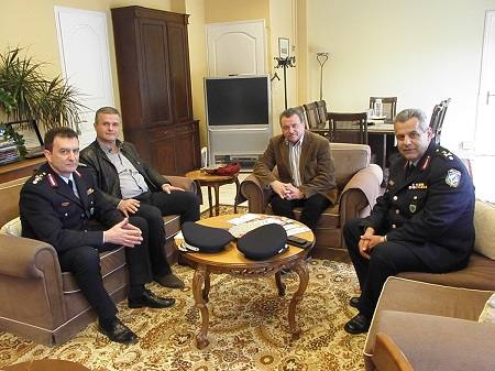 Ειδικότερα τη συζήτηση απασχόλησε η πιθανότητα ενίσχυσης των Υπηρεσιών της ΕΛ.ΑΣ. μέσω του προγράμματος ΕΣΠΑ 2014 -2020, για την ενίσχυση με μηχανολογικό εξοπλισμό, οχήματα, την οδική σήμανση, αντικατάσταση πινακίδων ΚΟΚ, διαγραμμίσεις, σημάνσεις, οριοσήμανση κλπ.