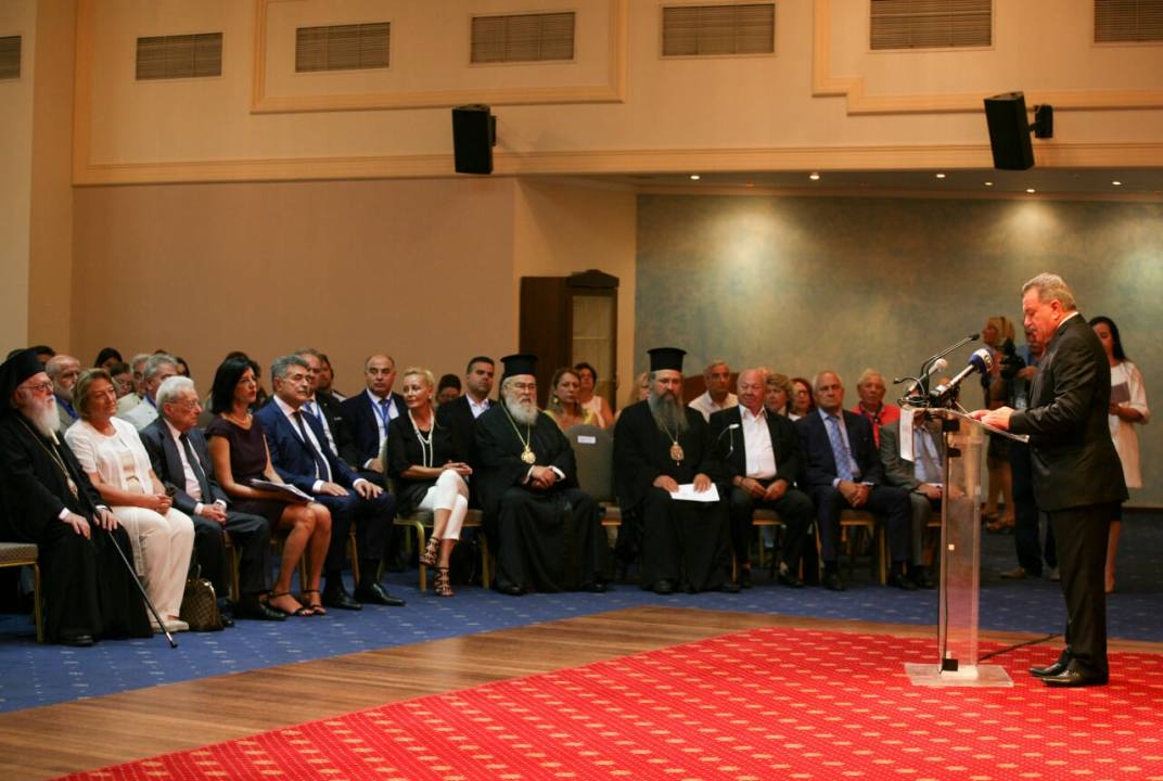 Στην εκδήλωση χαιρετισμό απηύθυναν επίσης ο Δήμαρχος Κέρκυρας Κώστας Νικολούζος και ο Σεβασμιώτατος Μητροπολίτης Κερκύρας, Παξών και Διαποντίων Νήσων κ.κ. Νεκτάριος που εξήρε για ακόμη μία φορά τον Περιφερειάρχη Ιονίων Νήσων κ. Θεόδωρο Γαλιατσάτο, για την πρωτοβουλία να διοργανώσει το 1ο Διεθνές Συνέδριο Αποδήμων Επτανησίων και να τιμήσειτον Αρχιεπίσκοπο Τιράνων, Δυρραχίου και πάσης Αλβανίας κ.κ. Αναστάσιο