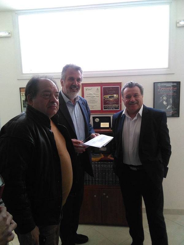 Μαζί με τον πρόεδρο των Κυνοπιαστών κ. Αρβανιτάκη και τον πρ. Νομάρχη κ. Πουλημένο ο Περιφερειάρχης επισκέφθηκε και την αίθουσα εκδηλώσεων της Φιλαρμονικής Κυνοπιαστών, το Δ.Σ. της οποίας κατέθεσε αίτημα προμήθειας καρεκλών για τις ανάγκες της, αίτημα που εξετάζεται ως προς τον τρόπο προμήθειας: είτε από μέρος της δωρεάς IKOS ή με δαπάνη της Περιφέρειας Ιονίων Νήσων.
