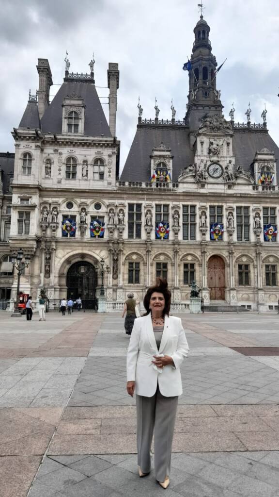 λεζάντα κεντρικής φωτό: Η Περιφερειάρχης Ιονίων Νήσων, Ρόδη Κράτσα-Τσαγκαροπούλου, μπροστά από το Δημαρχείο Παρισίων