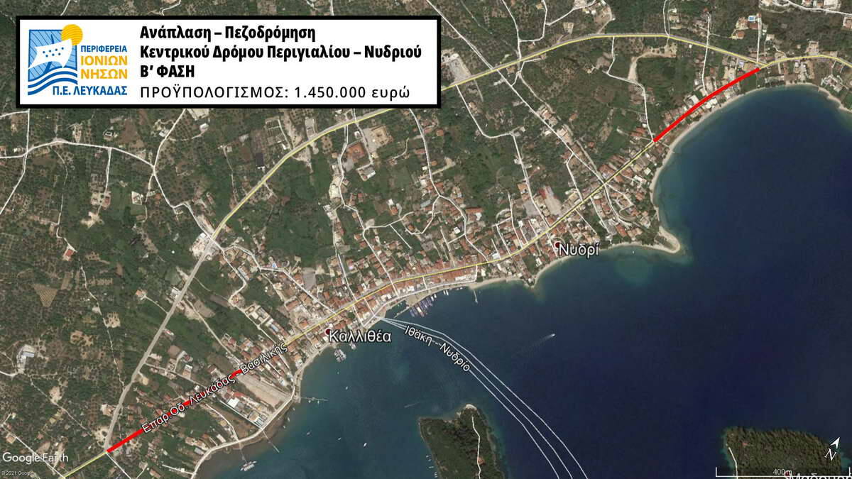 Την οριστική μελέτη του έργου «Ανάπλαση – Πεζοδρόμηση Κεντρικού Δρόμου Περιγιαλίου – Νυδριού Β’ ΦΑΣΗ», προϋπολογισμού 1.450.000 ευρώ, ενέκρινε η Περιφερειακή Ενότητα Λευκάδας και προωθείται άμεσα στην επόμενη συνεδρίαση της Οικονομικής Επιτροπής της Περιφέρειας Ιονίων Νήσων για την έγκριση διενέργειας του διαγωνισμού για την εκτέλεση του έργου.