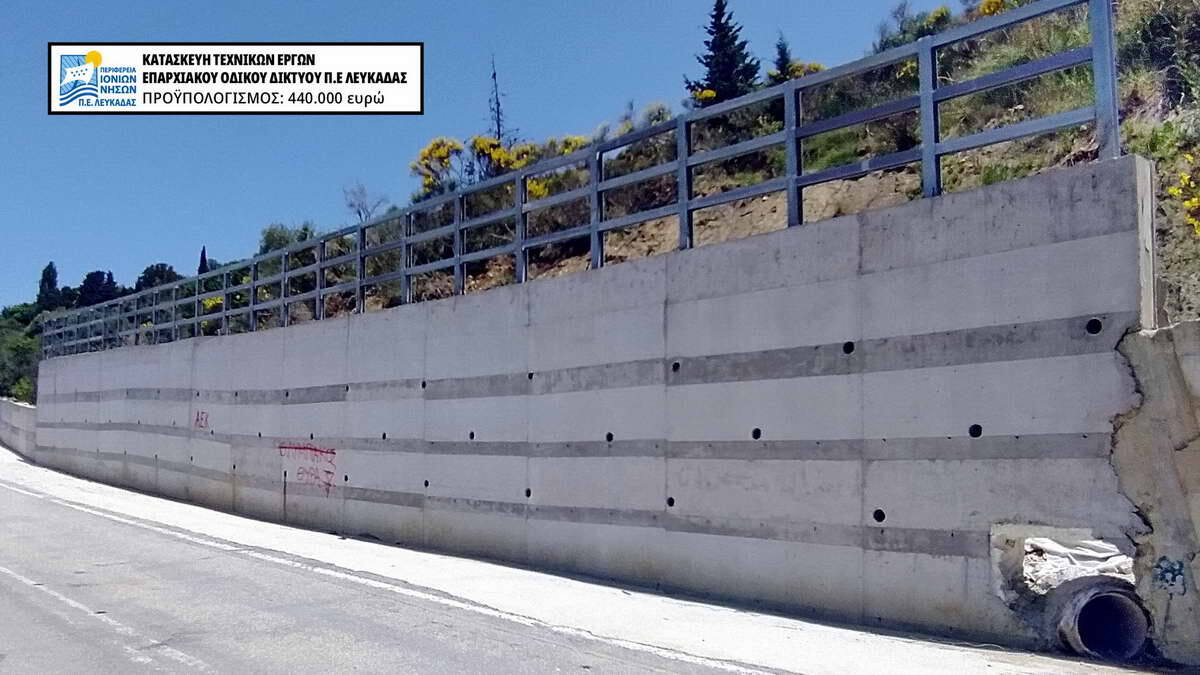 Το έργο «Κατασκευή Τεχνικών Έργων Επαρχιακού Οδικού Δικτύου Π.Ε Λευκάδας», με προϋπολογισμό 440.000 ευρώ, χρηματοδοτήθηκε από το Πρόγραμμα Δημοσίων Επενδύσεων (ΠΔΕ) της Περιφέρειας Ιονίων Νήσων, μέσω της ΣΑΕΠ 522 με Κ.Ε. 2018ΕΠ52200008 και υλοποιήθηκε από τη Διεύθυνση Τεχνικών Έργων (ΔΤΕ) της Περιφερειακής Ενότητας Λευκάδας με Ανάδοχο την εταιρεία «ΔΡΑΚΑΤΟΣ ΛΕΩΝΙΔΑΣ – ΣΤΕΦΑΝΟΣ ΤΟΥ ΙΩΑΝΝΗ».