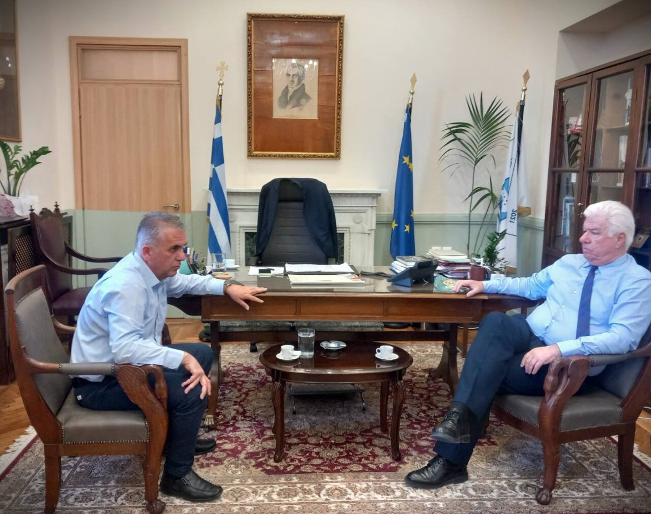 Στο επίκεντρο της συζήτησης του Περιφερειάρχη με τον Δήμαρχο βρέθηκαν δύο σημαντικά έργα υποδομών, τα οποία αφορούν άμεσα την τοπική κοινωνία και την περιβαλλοντική αναβάθμιση του νησιού.