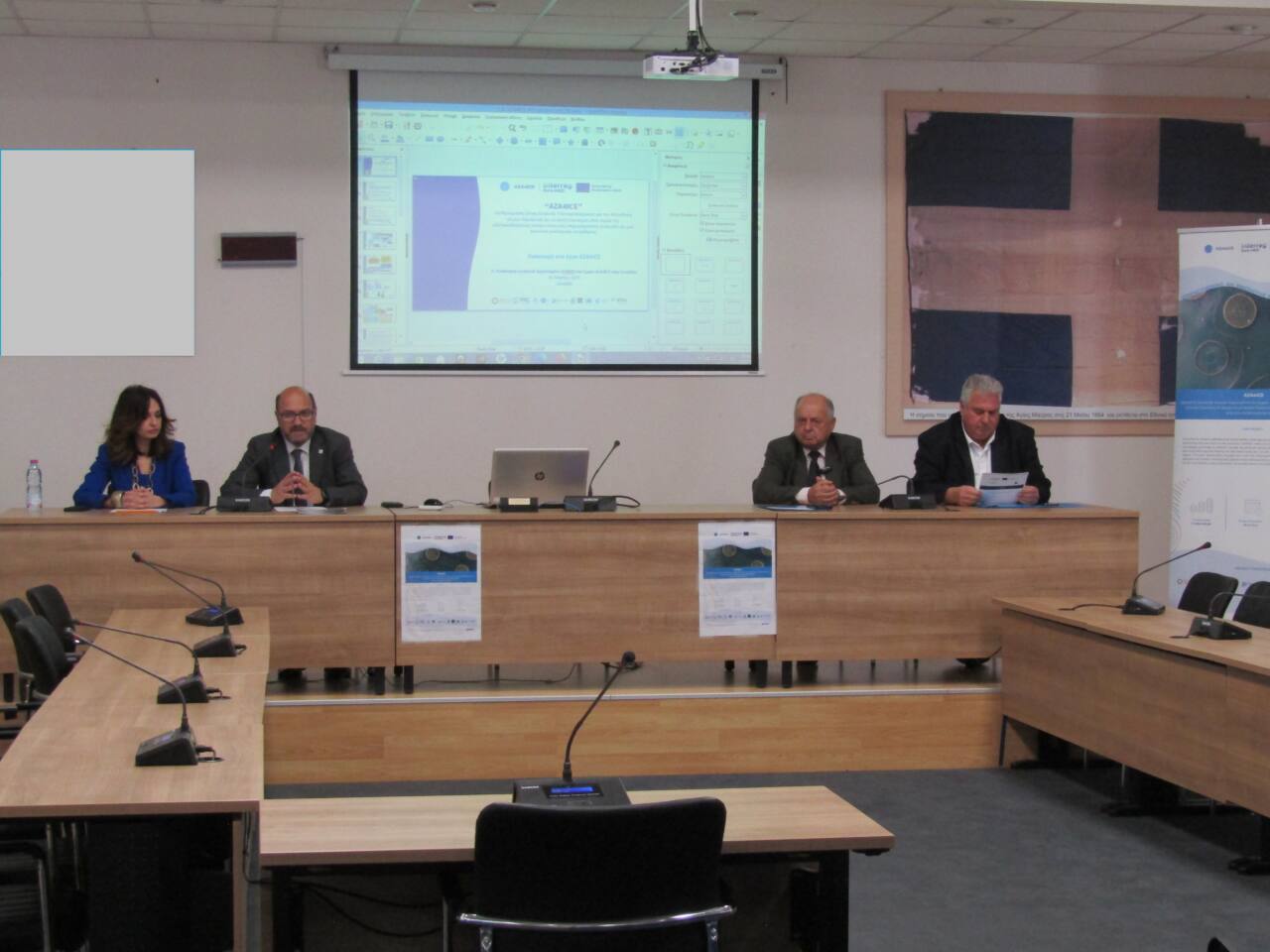 Συνάντηση εργασίας στην αίθουσα του Διοικητηρίου, πραγματοποιήθηκε τη Δευτέρα 31 Μαρτίου, στα πλαίσια του Προγράμματος Διακρατικής Συνεργασίας Interreg EURO–MED AZA4ICE (Allocated Zones for circular Aquaculture to trigger the transition to an inclusive and circural economy in aquaculture sector fostering new business opportunitiew and eco-consiousness society/ Καθορισμένες ζώνες για κυκλική υδατοκαλλιέργεια για την ενεργοποίηση της μετάβασης σε μια περιεκτική και κυκλική οικονομία στον τομέα της υδατοκαλλιέργειας, ενισχύοντας νέες επιχειρηματικές ευκαιρίες και οικολογική κοινωνική συνείδηση).