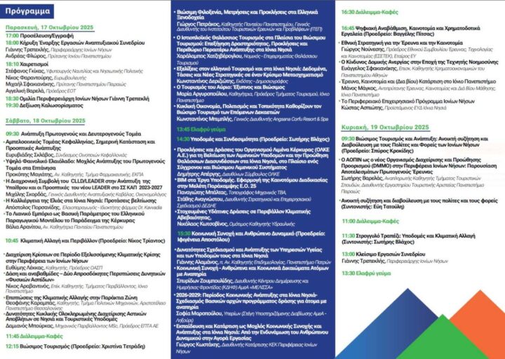 - Αιγίδα – Διοργάνωση: Περιφέρεια Ιονίων Νήσων – Ιόνιο Πανεπιστήμιο