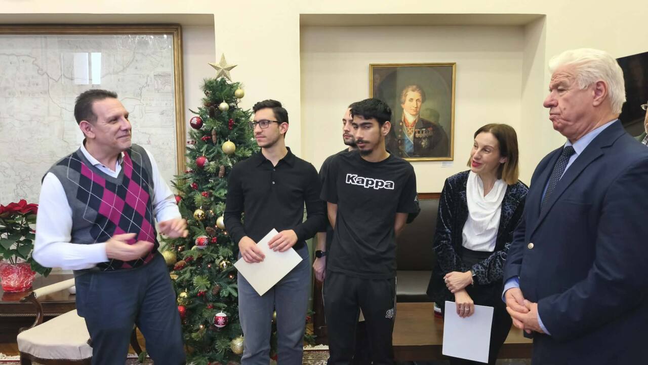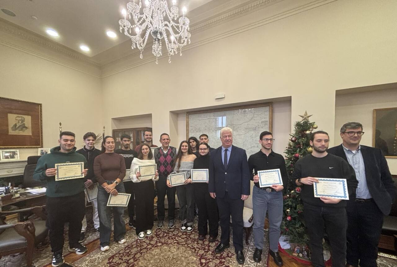 Στο Γραφείο του Περιφερειάρχη πραγματοποιήθηκε σήμερα η απονομή βεβαιώσεων σε φοιτητές του Ιονίου Πανεπιστημίου, οι οποίοι πρόσφεραν εθελοντικά τις υπηρεσίες τους στο Αναπτυξιακό Συνέδριο της Περιφέρειας. Σε κάθε φοιτητή απονεμήθηκε βεβαίωση για την πολύτιμη υποστήριξή του στη διοργάνωση.