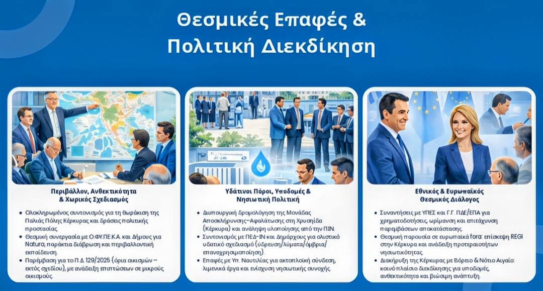Συμπερασματικά, ο Απολογισμός του 2025 επιβεβαιώνει ότι η Περιφερειακή Αρχή εργάζεται με σχέδιο, συνέπεια και κοινωνική ευθύνη. Με πυξίδα την ασφάλεια, την ευημερία και την προοπτική των Ιονίων Νήσων, η ΠΙΝ συνεχίζει να μετατρέπει τη νησιωτικότητα από πρόκληση σε συγκριτικό πλεονέκτημα.