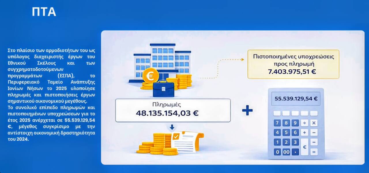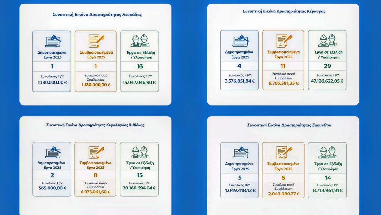«Ο απολογισμός του 2025 είναι η απόδειξη ότι με σχέδιο, συνεργασία και διάθεση διεκδίκησης, τα Ιόνια Νησιά αλλάζουν σελίδα. Συνεχίζουμε το έργο μας με την ίδια αφοσίωση, υπηρετώντας τις ανάγκες και τα όνειρα των συμπολιτών μας».