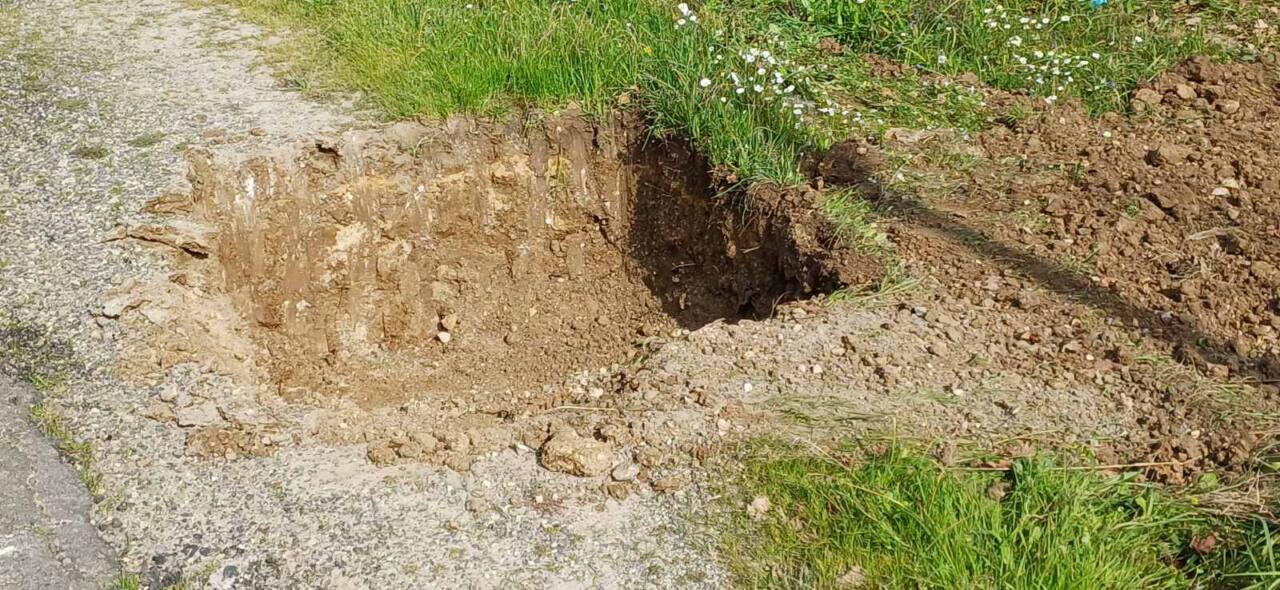 Στο σημείο σημειώθηκε κατολίσθηση λόγω της παρουσίας υπογείων υδάτων, η οποία προκάλεσε υποχώρηση τμήματος του οδοστρώματος.