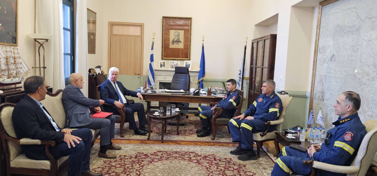 Τον Αντιστράτηγο συνόδευαν ο Περιφερειακός Διοικητής Πυροσβεστικών Υπηρεσιών Ιονίων Νήσων, Αρχιπύραρχος Νεκτάριος Θεοδωράκος, καθώς και ο Διοικητής Πυροσβεστικών Υπηρεσιών Νομού Κέρκυρας, Πύραρχος Βασίλης Γιάννος. Στη συνάντηση παρευρέθηκε και ο Δήμαρχος Βόρειας Κέρκυρας, Γιώργος Μαχειμάρης.